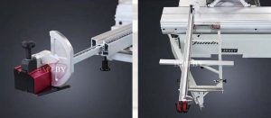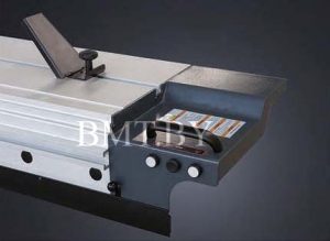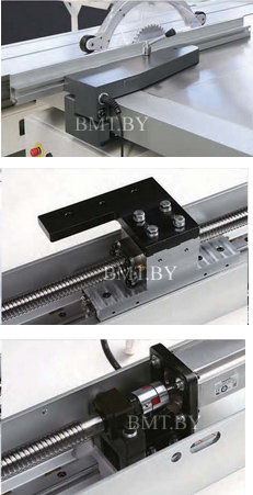 Управление продольным упором осуществляется через ЧПУ контроллер. Сам упор перемещается посредством сервомотора, высокоточной шарико-винтовой пары и линейной направляющей. Все это обеспечивает необычайную точность (0,1 мм) и плавность движения упора. Скорость перемещения до 15 м/мин. Для безопасности работы станок оснащен системой защиты от столкновения упора с полотном пилы или защитным колпаком. |