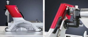 Высоко сбалансированные шпиндели основной и подрезной пилы позволяют работать с минимальным уровнем шума и вибрации. Пилы закрыты защитным кожухом а в нижней части пильного узла расположены 2 патрубка ,которые обеспечивают отличное удаление пыли. |