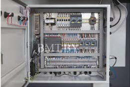 По нормам безопасности Евросоюза, станок оборудован двумя кнопками аварийной остановки. Все электрокомпоненты станка располагаются в отдельном шкафе. Электродвигатели оснащены системой электромагнитного торможения шпинделей для быстрой (не более 3 секунд) остановки шпинделей.  |