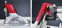Расширительный стол и торцовочный упор оборудованы системой «Compass», которая позволяет быстро позиционировать линейку для угловых резов. Линейка вращается относительно одной оси с использованием самосмазывающихся латунных подшипников скольжения с твердотельными тефлоново-графитными вставками. Обратная установка упора, за счет запатентованной системы зажима, не требует калибровки прямого угла и обеспечивает жесткость системы.  |